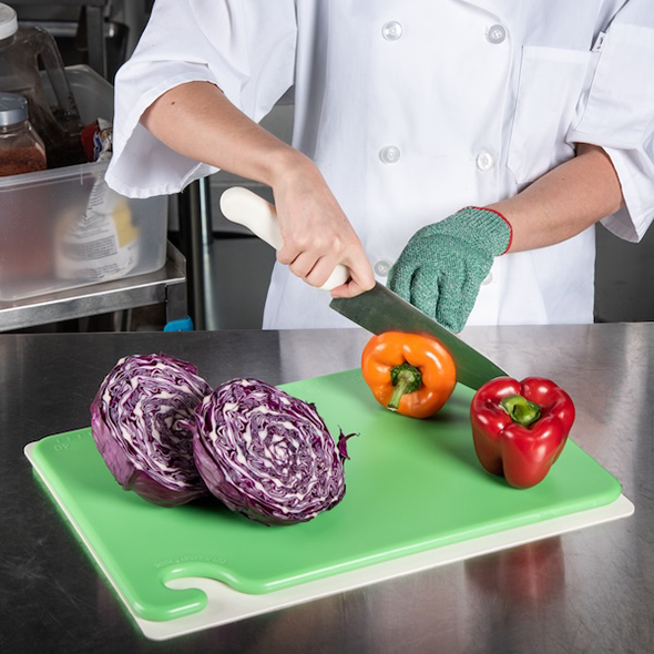 Torne a segurança alimentar sua principal preocupação designando as cores da tábua de corte para tipos específicos de alimentos. As tábuas de corte Cut-N-Carry são feitas de plástico co-polímero durável em uma variedade de cores HACCP que minimizam a contaminação cruzada. As placas fornecem resistência superior ao calor e à deformação, tornando-as ideais para suportar máquinas de lavar louça comerciais de alta temperatura.