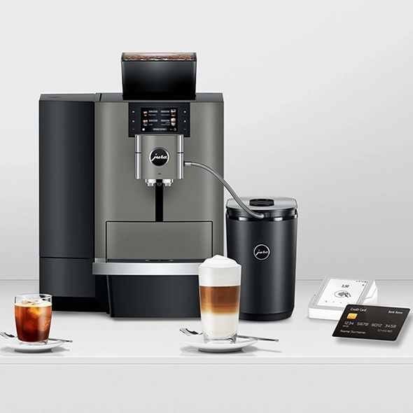 A X10 pode ser opcionalmente complementada com a interface MDB da JURA. Desta forma, suporta os sistemas de pagamento mais comuns e proporciona uma elevada flexibilidade e simplicidade. Um sistema de pagamento por cartão de crédito, em lote ou por telemóvel: a escolha é do utilizador. O JURA Pocket Pilot é também uma opção. Além de permitir pagamentos sem contacto, este software gratuito da JURA inclui também um sistema de faturação e gestão.