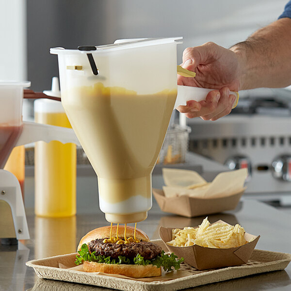 O dispensador de mostarda Prince Castle 406-AN é exatamente o que seu restaurante precisa!